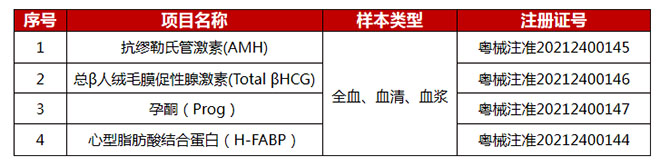 热烈庆祝杏彩·电子(中国)官方网站试剂自主研发的单人份化学发光试剂产品系列,获得抗缪勒氏管激素(AMH)、孕酮(Prog)、总β人绒毛膜促性腺激素(Total βHCG)和心型脂肪酸结合蛋白(H-FABP)4项医疗器械注册证。这是杏彩·电子(中国)官方网站试剂新推出的性激素类和心肌类的重要检测项目,有助于生殖系统功能和疾病、心梗的辅助诊断。